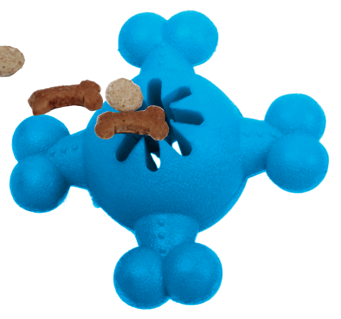 2.Features a centered socket with ridges for placement of Dog Treats that release when chewed on