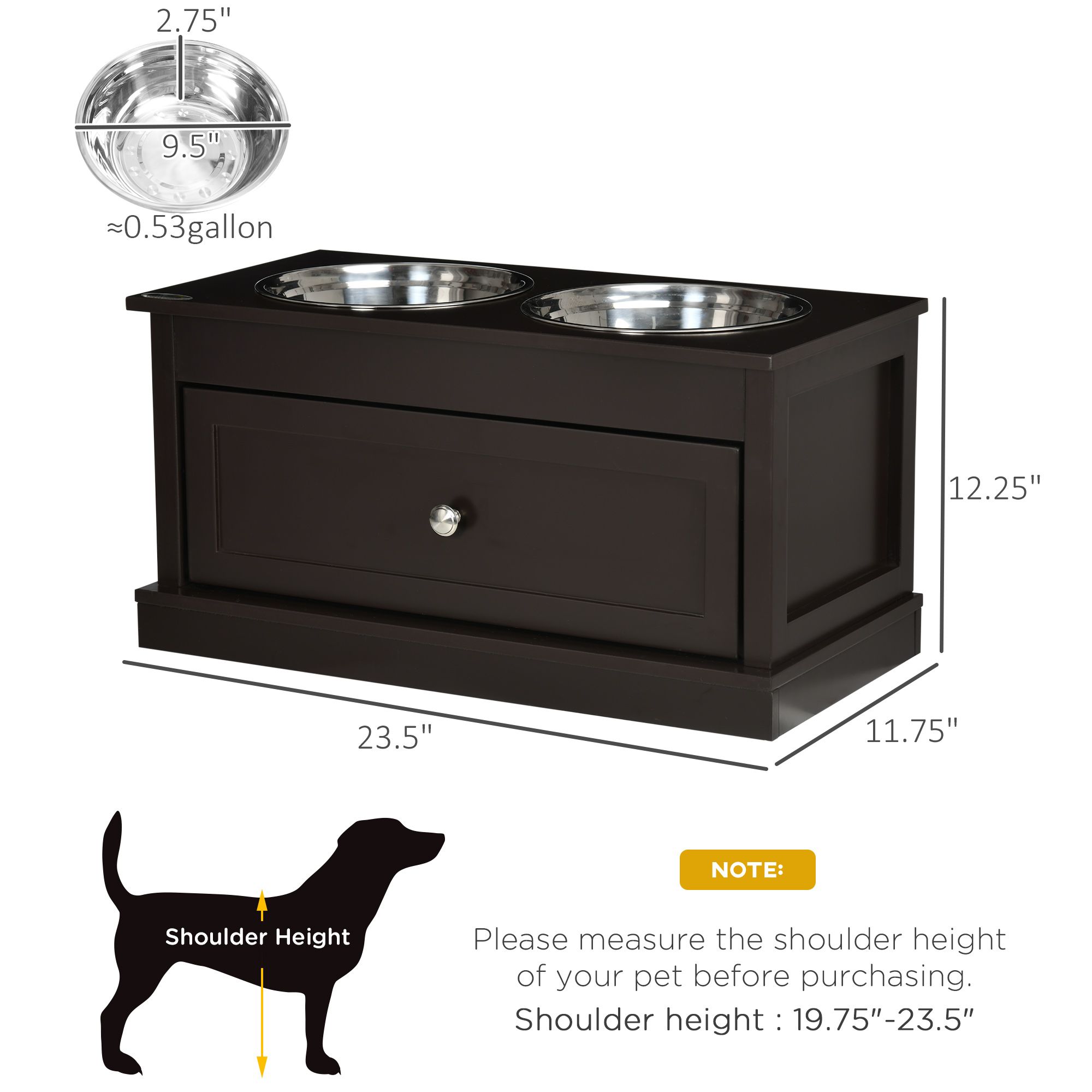 PawHut Double Elevated Dog Bowls for Large Dogs, Raised Dog Feeding Station with 2 Stainless Steel Bowls, Storage Drawer & Wood Stand for Cats, Brown PawHut Double Elevated Dog Bowls for Large Dogs, Raised Dog Feeding Station with 2 Stainless Steel Bowls, Storage Drawer & Wood Stand for Cats, Brown PawHut Double Elevated Dog Bowls for Large Dogs, Raised Dog Feeding Station with 2 Stainless Steel Bowls, Storage Drawer & Wood Stand for Cats, Brown